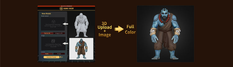 Upload an image and let our powerful AI perfectly transform it into a 3D model. You can also type a prompt or import your own 3D model. Get a downloadable full-color miniature, ready to print, in just minutes.